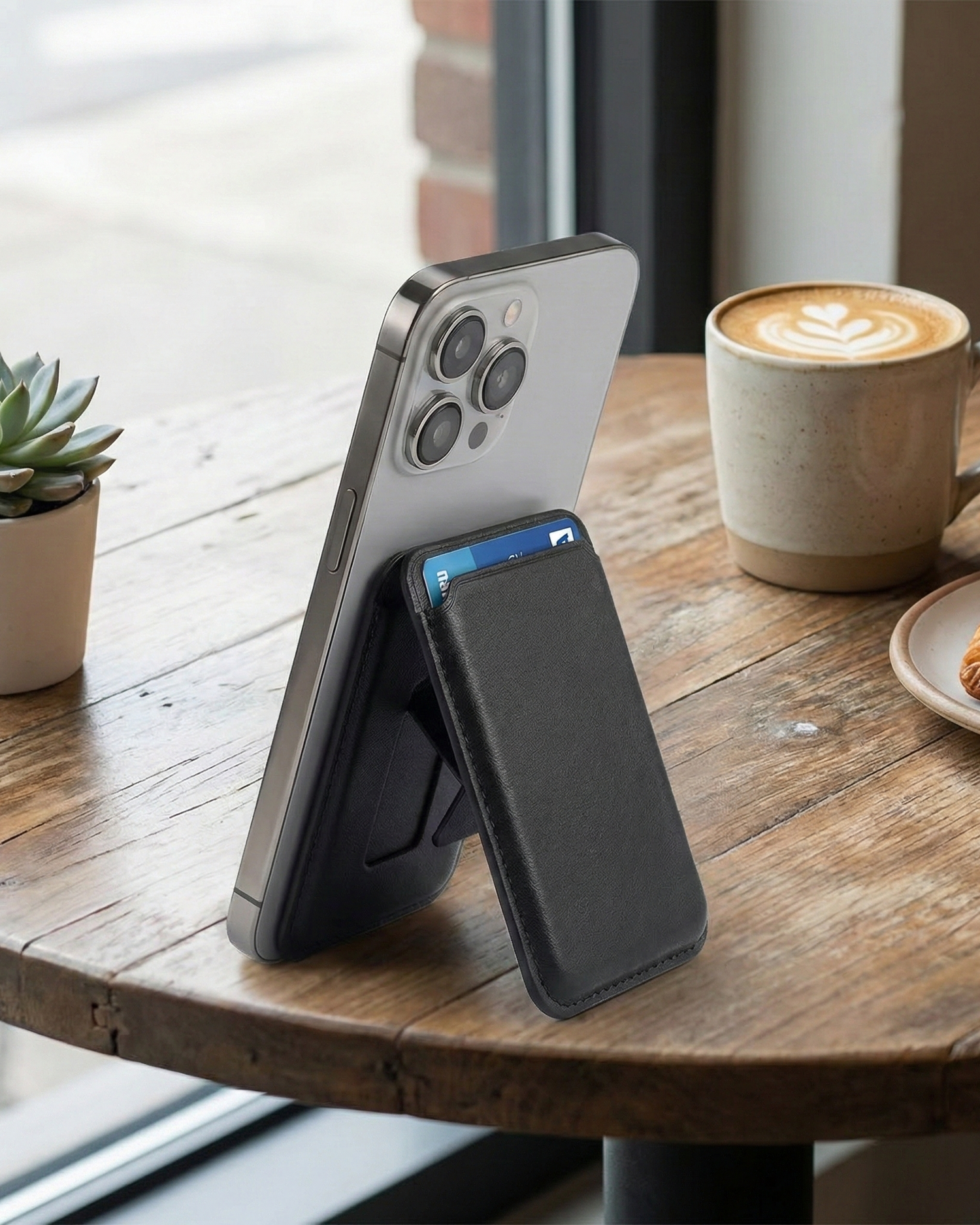 Elegancia funcional: la cartera magnética minimalista perfecta con soporte para el móvil.